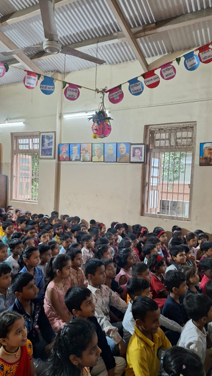 निर्जीव भिंतींना या जणू त्यांचे श्वास येऊन भेटले. सोमवार दिनांक 16 जून 2025 रोजी नवीन शैक्षणिक वर्षाची सुरुवात झाली. त्यानिमित्ताने शाळा छान सजली होती. मंगलमय वातावरणात सनईच्या सुरांमध्ये मुलांचे औक्षण करून स्वागत करण्यात आले. मुलांसाठी सेल्फी पॉईंट, गोड खाऊ, गंमत गोष्टी, खेळ यांची योजना करण्यात आली होती . विद्यार्थ्यांना शासनाकडून प्राप्त पाठ्यपुस्तकांचे वाटप मान्यवरांच्या हस्ते झाले . पहिलीचे विद्यार्थी शाळेत नवीन असल्याने त्यांच्यासाठी शाळेचा पहिला दिवस महत्त्वाचा म्हणून त्यांच्या हस्ते लेखनसाहित्याचे, सरस्वतीचे , शाला माता तसेच शालामातेच्या पहिल्या पायरीचे पूजन करण्यात आले. या सर्व कार्यक्रमात त्यांच्यासोबत असलेल्या मा. शालासमिती अध्यक्षा सौ. मैत्रेयी देसाई यांच्या शुभहस्ते वृक्षारोपण करण्यात आले यातून विद्यार्थ्यांवर पर्यावरण संवर्धनाचा संस्कार करण्यात आला. मा.शालासमिती अध्यक्षा आणि शाळेच्या मुख्याध्यापिका यांनीही विद्यार्थ्यांचे औक्षण करून सर्व विद्यार्थ्यांना त्यांच्या शाळा प्रथमदिनाच्या शुभेच्छा दिल्या. याप्रसंगी शाळेचे माजी विद्यार्थी असणारे विनायक नवयुग मित्र मंडळाचे पदाधिकारी आणि कार्यकर्ते उपस्थित राहिले त्यांनीही मुलांना खाऊचे वाटप करून शुभेच्छा दिल्या.